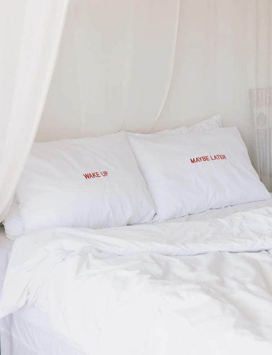 Wake Up - Maybe Later Gepersonaliseerde kussensloop voor de slaapkamer