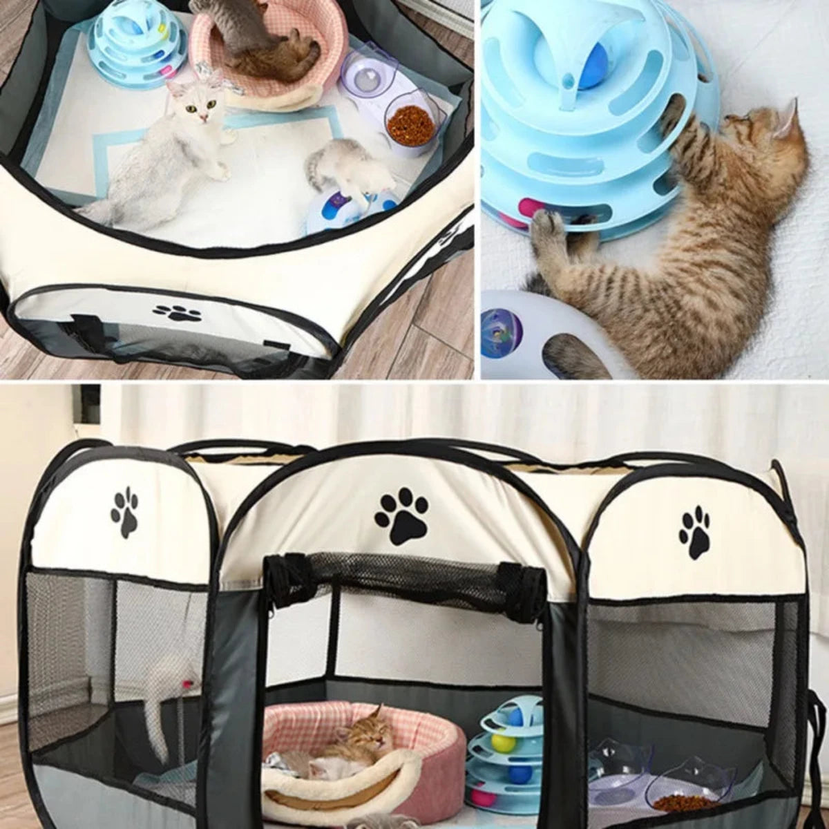Heeft u een huisdier dat houdt van spelen maar bang is voor buitenruimtes? Met onze Gemakkelijk op te zetten Huisdieren Tent kunt u een veilige en comfortabele plek bieden voor uw huisdier, zowel binnen als buiten. Deze tent zorgt ervoor dat uw huisdier kan genieten van frisse lucht zonder de gevaren van insecten of ontsnappen. Perfect voor reizen, kamperen en thuis.