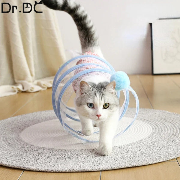 Deze opvouwbare kattentunnel biedt een spannende speelervaring, waardoor je kat nooit meer verveeld zal zijn. De kleurrijke spiralen en het krinkelende materiaal stimuleren hun nieuwsgierigheid en zorgen voor urenlang speelplezier.