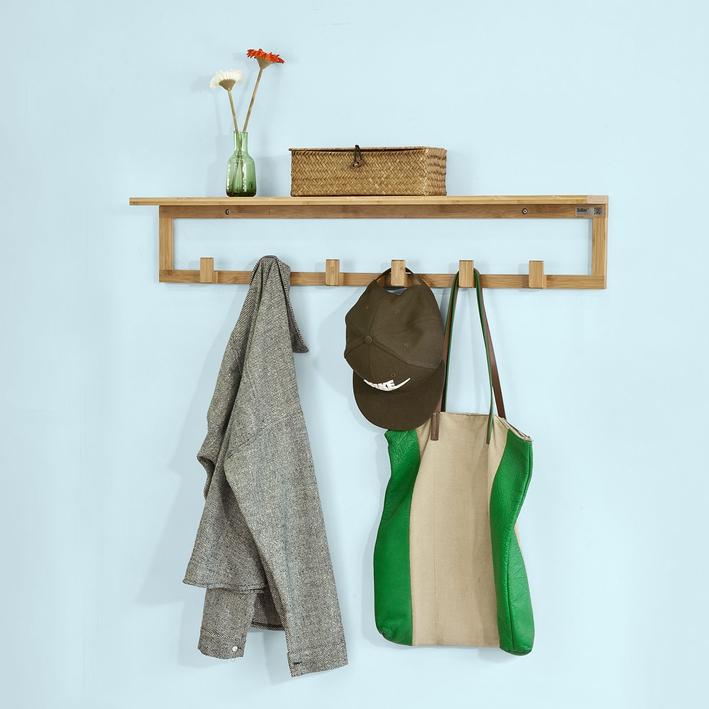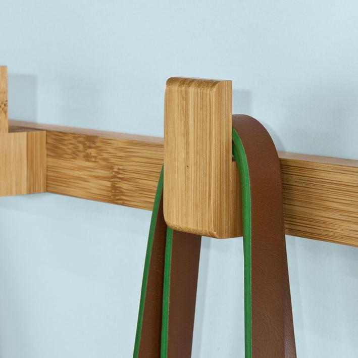 Bamboe is niet alleen stijlvol, maar ook uitzonderlijk duurzaam. Dit wandrek kan tegen een stootje, perfect voor drukke gezinnen. Zeg vaarwel tegen rondslingerende jassen en tassen. Met zes robuuste haken houd je alles geordend, direct binnen handbereik. Het gemak van eenvoudige montage betekent dat je in no-time geniet van een nette entree. Geniet van de natuurlijke kleuren en het multifunctionele ontwerp, ideaal voor elke kamer waar organisatie nodig is zonder in te leveren op stijl.