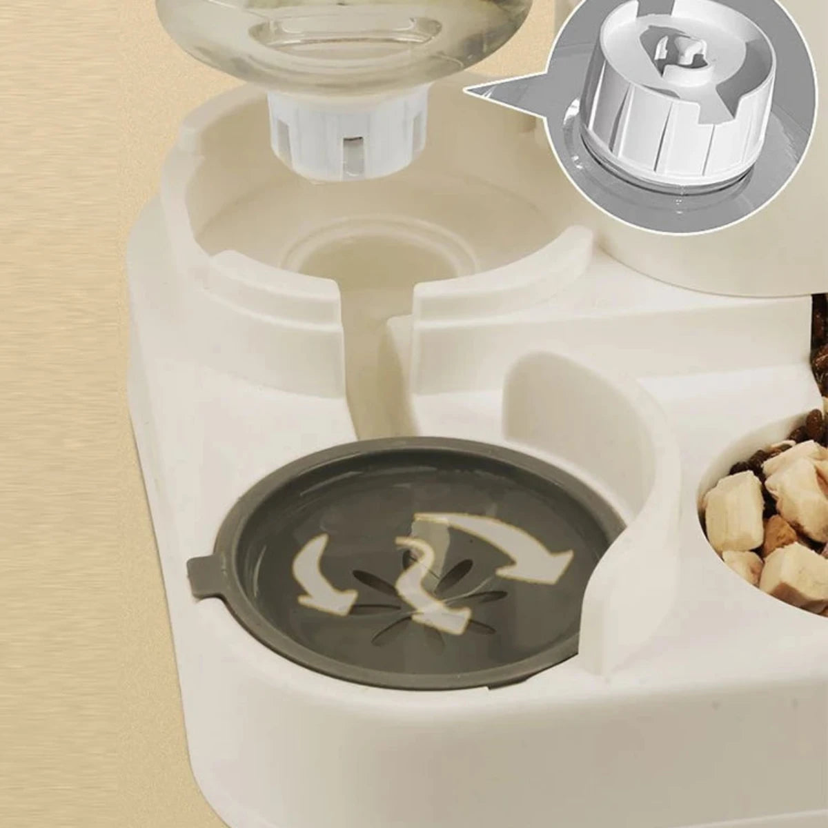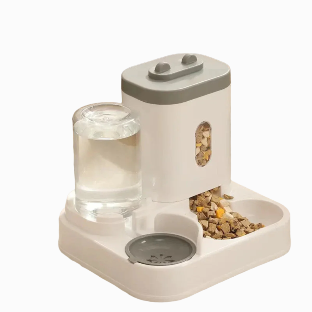 Met aparte compartimenten voor droog en nat voedsel, blijft het voer vers en lekker. Geen verspilling meer van ongegeten of oud voer.
