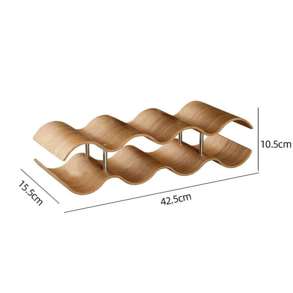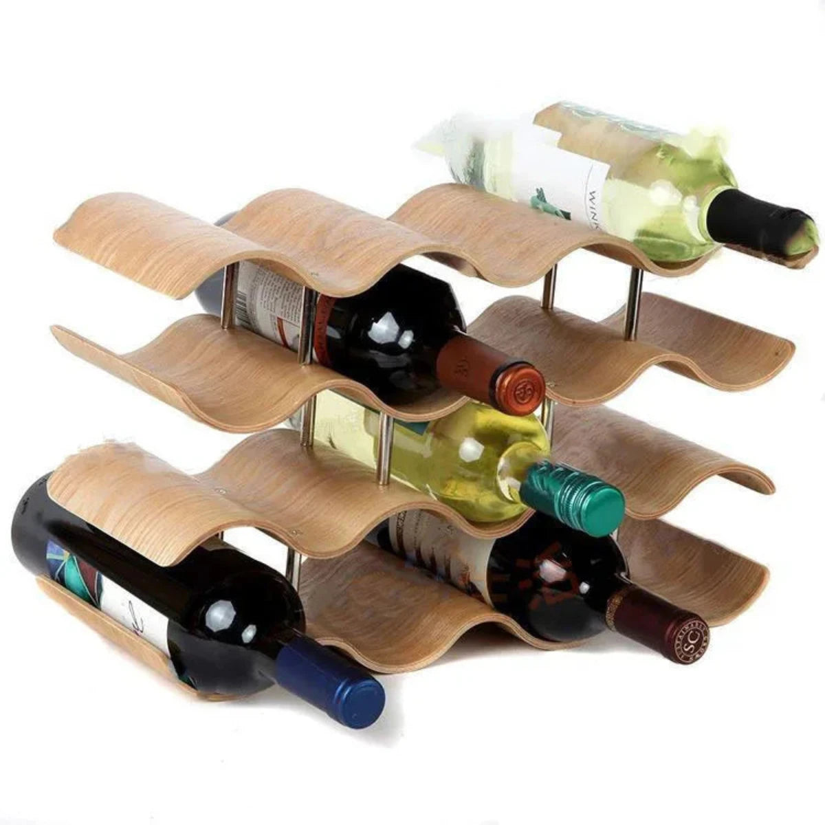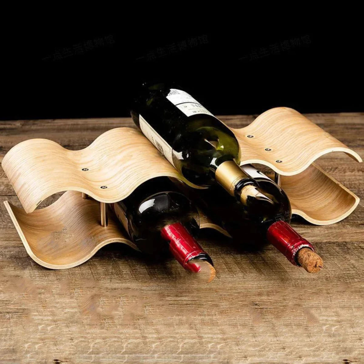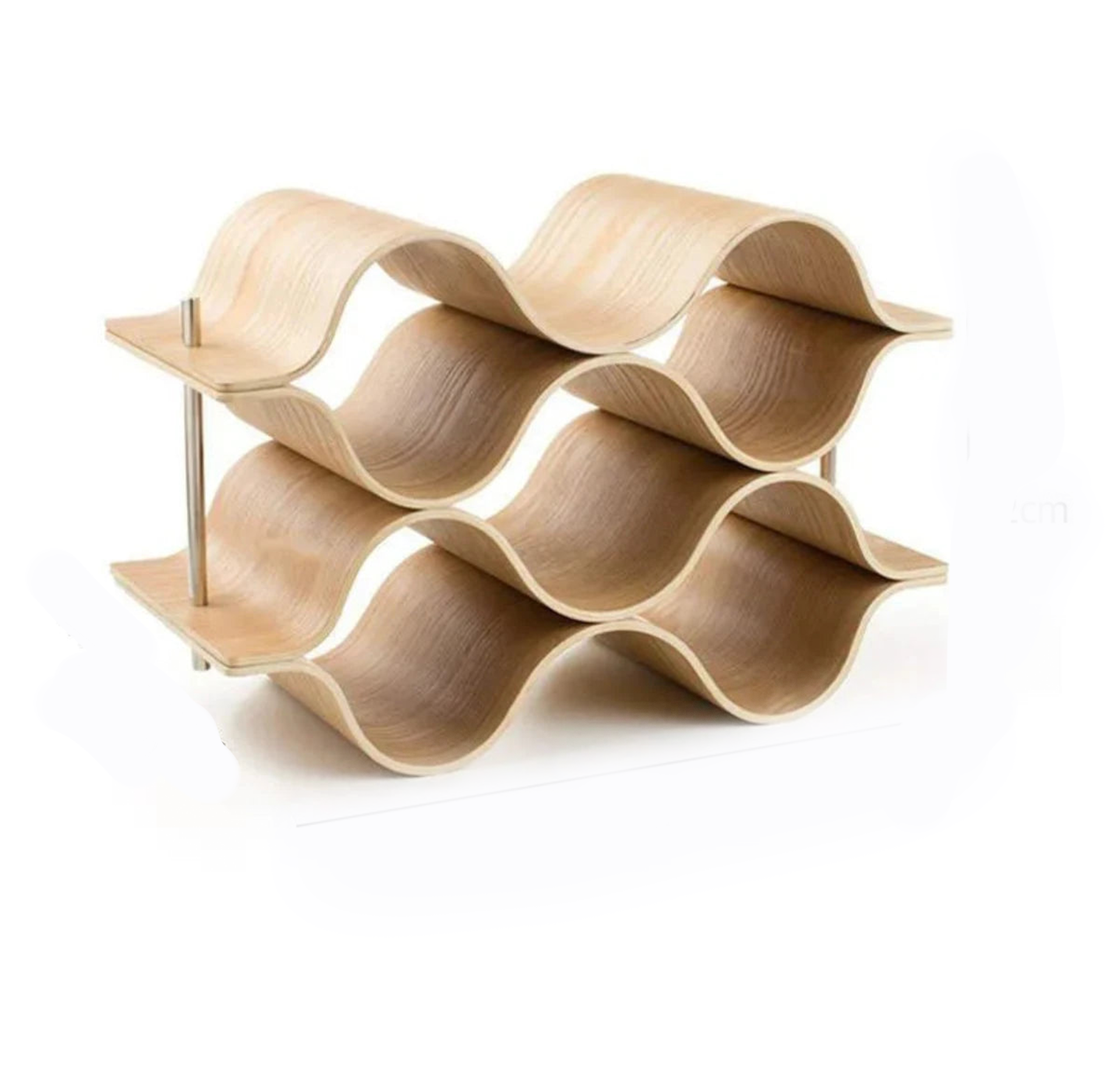 Met het creatieve golvend houten wijnrek kunt u uw wijnflessen netjes en stijlvol opbergen. Dankzij het eenvoudige ontwerp kunt u het rek overal neerzetten zonder dat het ruimte inneemt. Dit multifunctionele rek is ook milieuvriendelijk, waardoor u niet alleen uw wijnen, maar ook het milieu helpt.