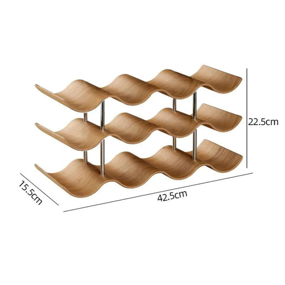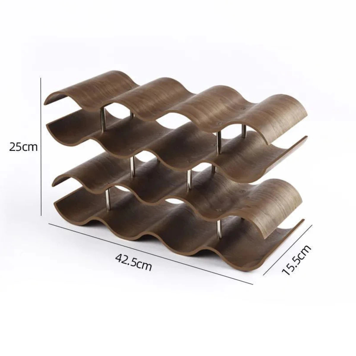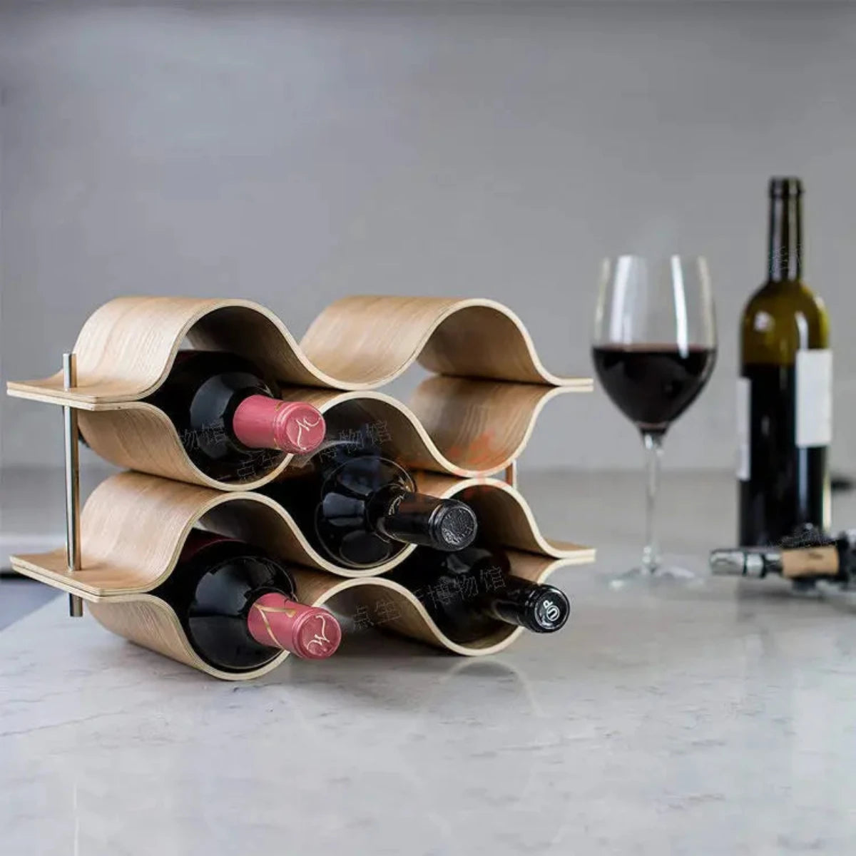 Met het creatieve golvend houten wijnrek kunt u uw wijnflessen netjes en stijlvol opbergen. Dankzij het eenvoudige ontwerp kunt u het rek overal neerzetten zonder dat het ruimte inneemt. Dit multifunctionele rek is ook milieuvriendelijk, waardoor u niet alleen uw wijnen, maar ook het milieu helpt.