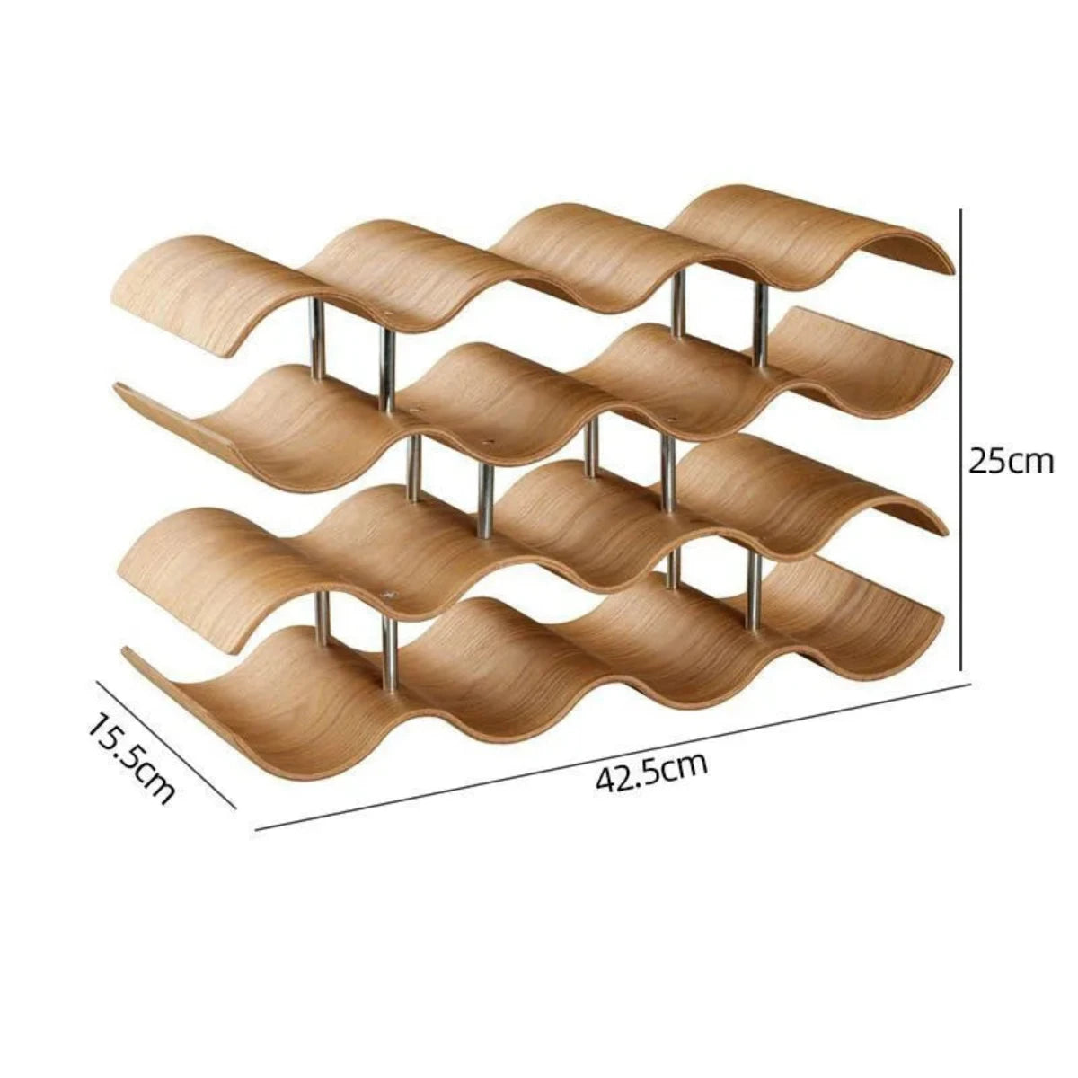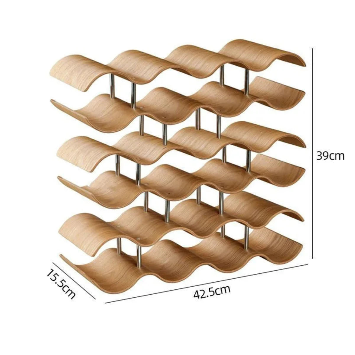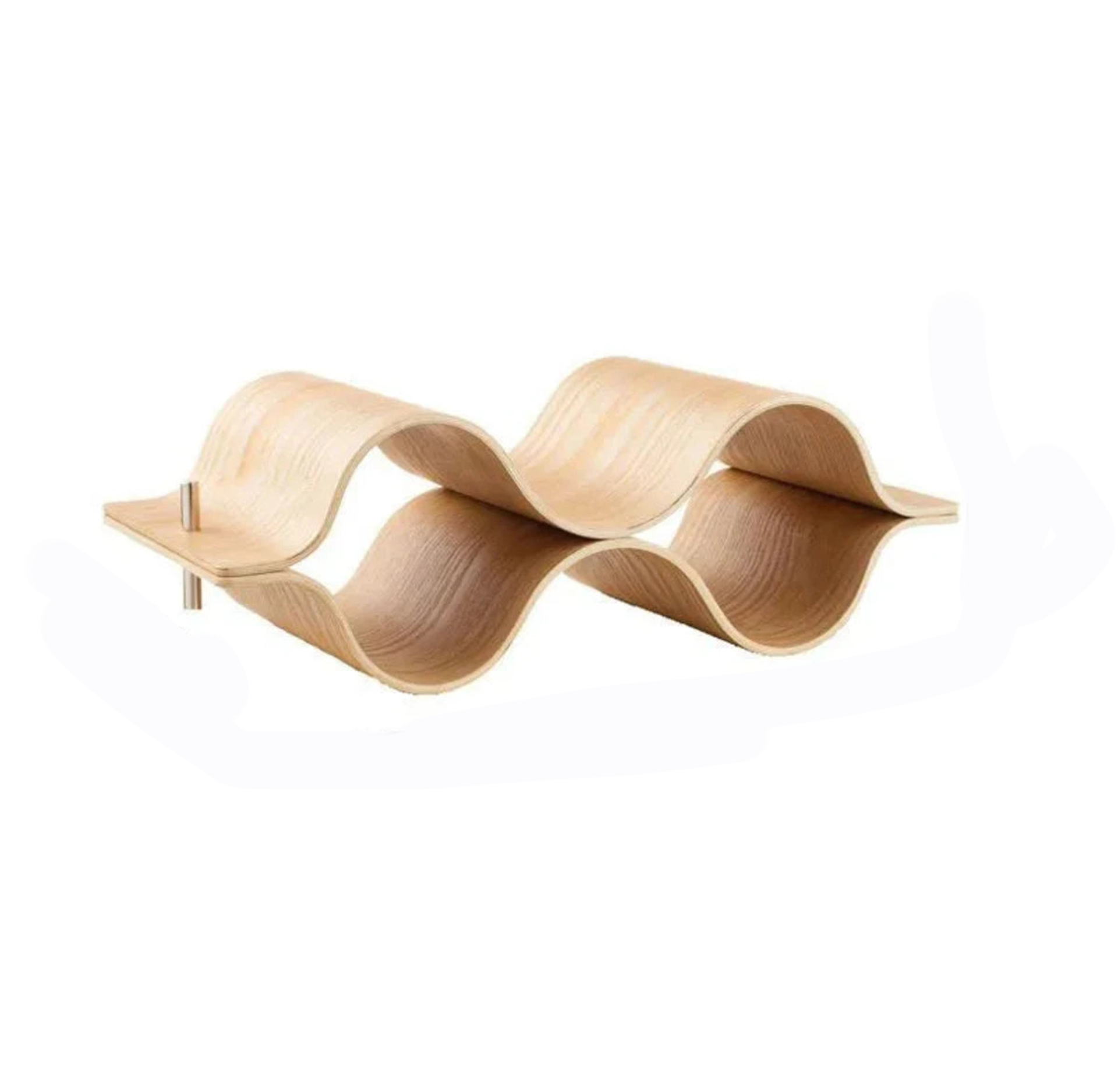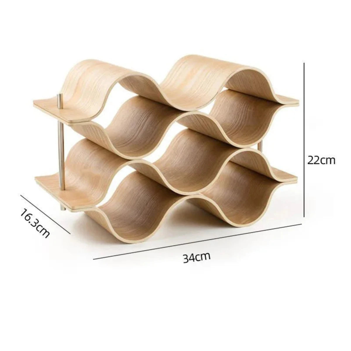 Met het creatieve golvend houten wijnrek kunt u uw wijnflessen netjes en stijlvol opbergen. Dankzij het eenvoudige ontwerp kunt u het rek overal neerzetten zonder dat het ruimte inneemt. Dit multifunctionele rek is ook milieuvriendelijk, waardoor u niet alleen uw wijnen, maar ook het milieu helpt.
