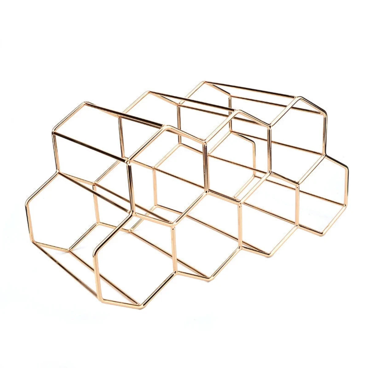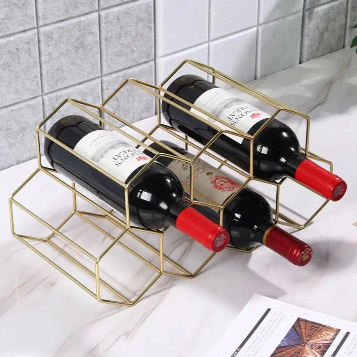Ontmoet het Honingraat Metaal Wijnrek Boa! Dit prachtige wijnrek biedt niet alleen een veilige en stabiele opslag van je wijnflessen, maar voegt ook een vleugje elegantie toe aan elke keuken, eetkamer of bar. Het unieke moderne ontwerp houdt flessen horizontaal en zorgt ervoor dat de kurken vochtig blijven, waardoor je wijn langer vers blijft. Geen montage nodig, je kunt direct genieten van je nieuwe wijnrek.